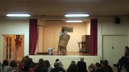 The artist pulls themselves along the floor of a community hall by sticking toilet plungers to the ground and using the suction to pull themselves forward. They move in a circular trajectory amongst rows of seated audience members. Without appearing to directly address anyone present the artist periodically says the words “Is that alright? Is that ok? what about that?”