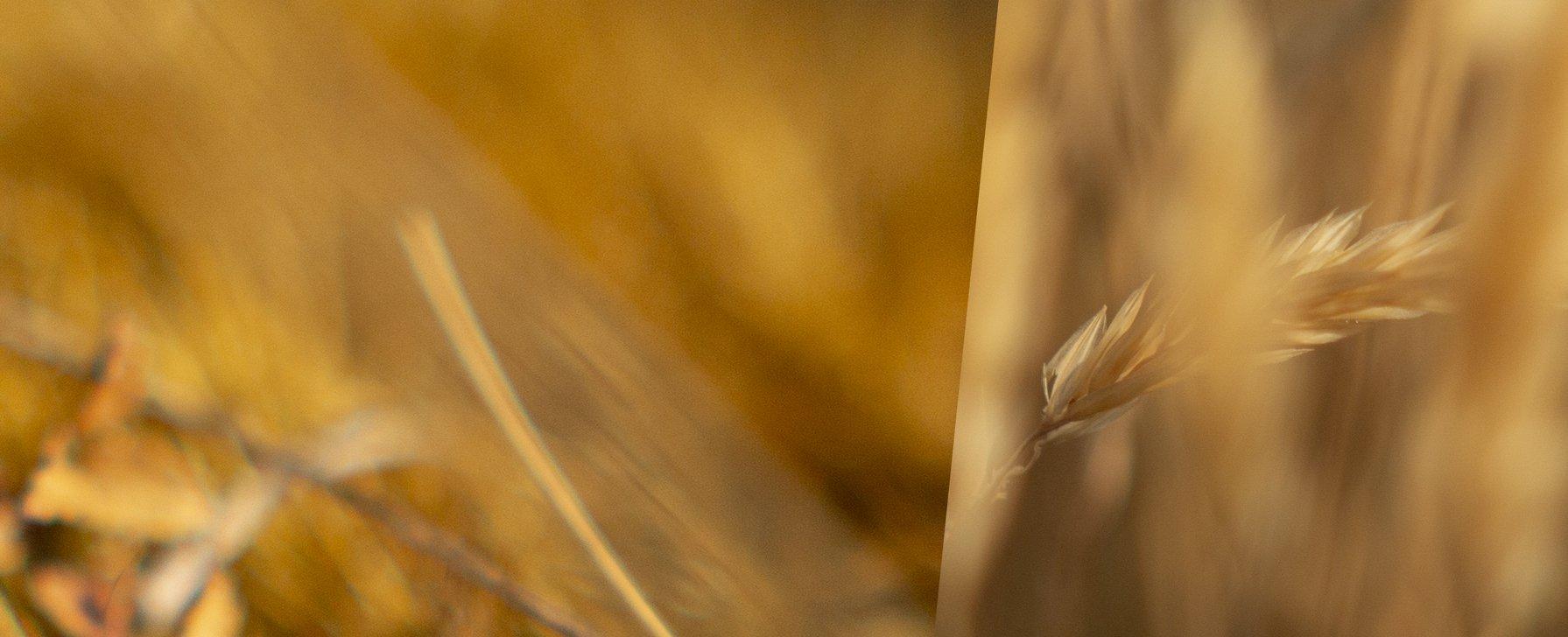 The grass feels symbolic: there is a sense of hope that comes from the symbolism of plant seeds that is somewhat melancholy due to the whisper of autumn such a dried remnant of the natural world possesses.