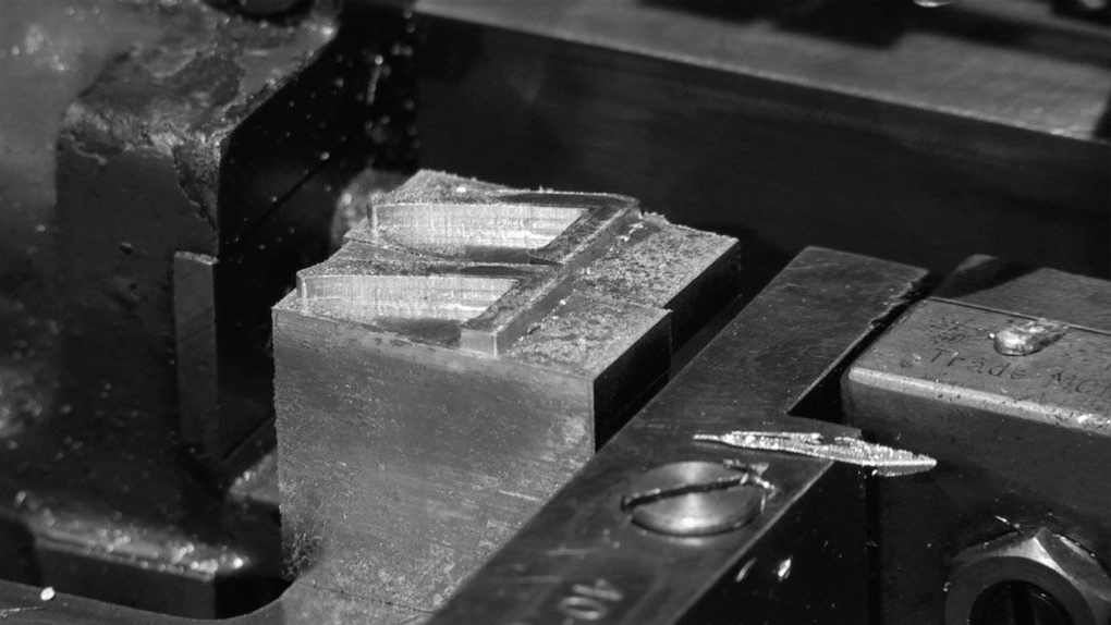 Accounting for quantities that are explicitly nonzero and yet smaller in absolute value than any real quantity, infinitesimals are the types of supplements that escape meaning and yet are so necessary to its transmission. This notion of a supplement is crucial to Lacey’s Infinitesimals, a three-channel video work, which imagines a scenario whereby a piece of lead type is diluted and ingested according to homeopathic methods. Comprising video documentation of the foundry where Lacey’s sixty-point metal typeface is being made, another scene in a homeopathic laboratory that follows the distillation and production of the homeopathic remedy drawn from the type face, and a final vignette that documents a joke about the homeopath’s radio which can never not be turned off, Infinitesimals was originally installed in a kind of chamber, in which the three monitors face off against each other, positioned as they were on dual slim metal poles, making the rails eerily reminiscent of the disassembly lines that so inspired Henry Ford’s standardised mass-production. I will return to this orchestration later but for now it’s enough to look to the origins of the typeface in the work.